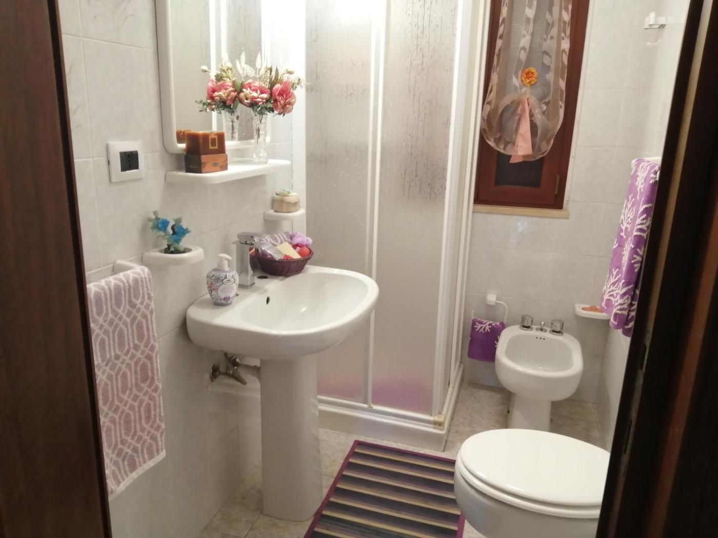 Questa casa vacanze presenta 2 camere da letto, 2 bagni, lenzuola, asciugamani, una TV, una zona pranzo, una cucina con utensili e una terrazza con vista sul mare.